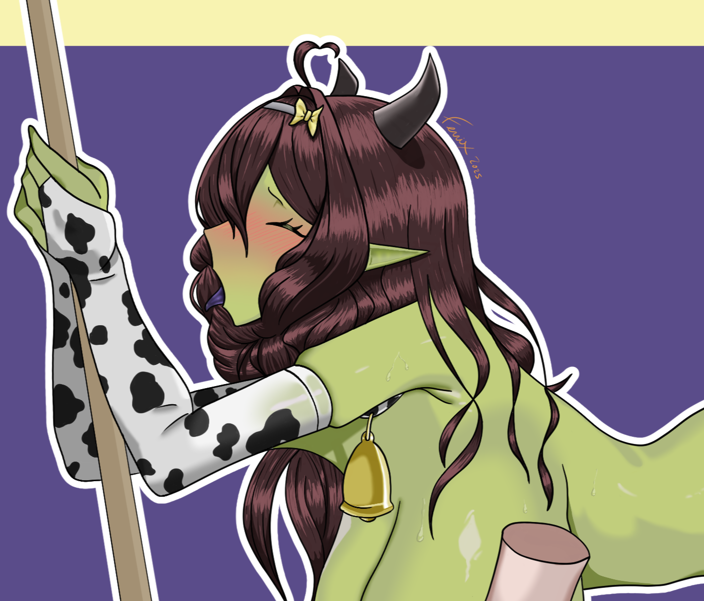 A little taco loving goblin. Spent weeks terrorizing the towns people, stealing their food and wines. Someone for hire from the guild came to town to take care of the goblin by any means. Mikoto found the goblin's cave, challenging her and defeating her in battle. Smitten from her loss the goblin followed Mikoto falling in love with the other woman. After a few days Mikoto decided to keep the goblin as a companion, giving the name Maxxie to the little gobo.